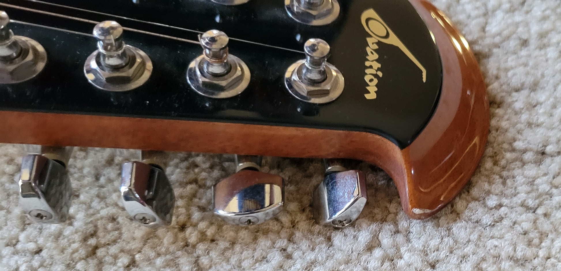Serial Number 548221 indicates this was made in 2000. Rarely played, this guitar has been in its case most of its life. There are no significant dings, damage, or scratches, except I notice a tiny ding on one of the points of the headstock (see the photos).