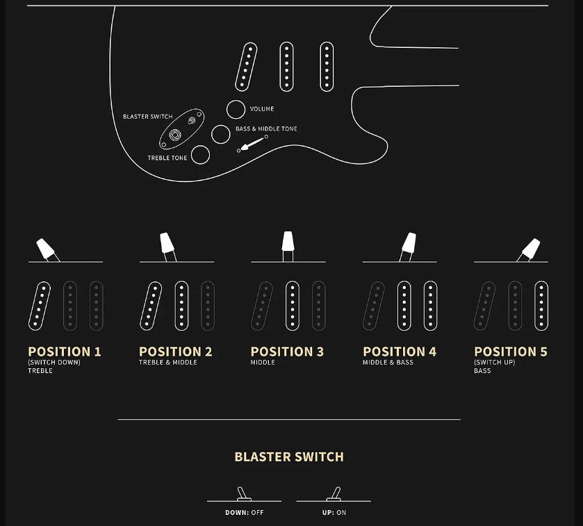 Controls One Volume and Two Tone Controls with a 5-Way Blade Pickup Switch