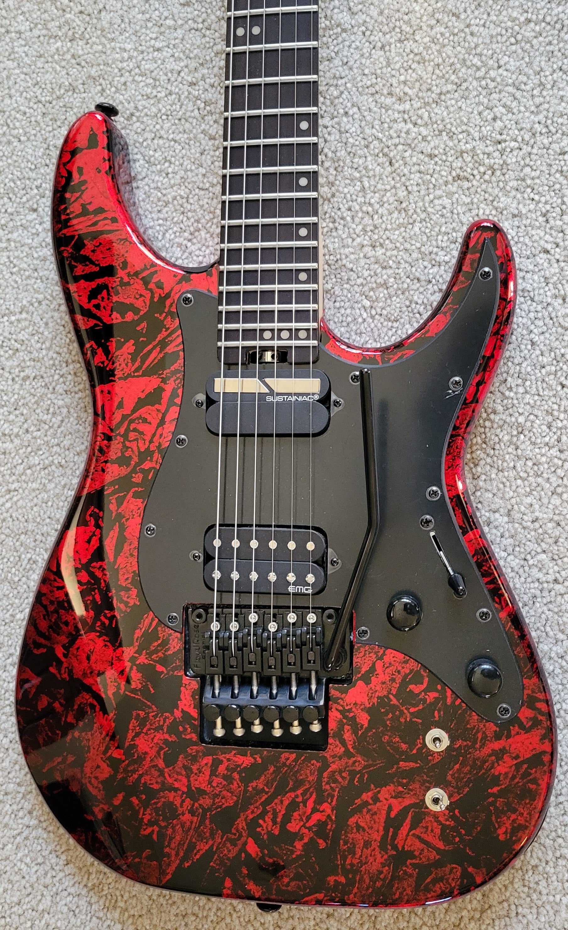 This is the Awesome Schecter Sun Valley Super Shredder FR S Electric Guitar, with the Red Reign Finish