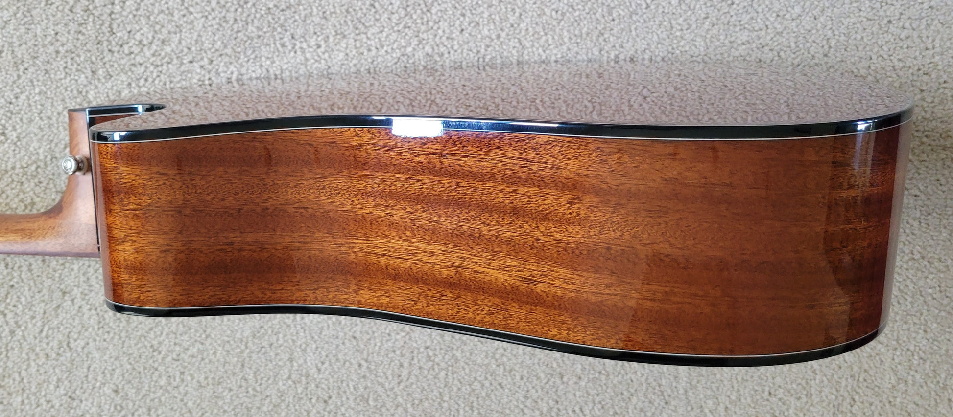 Other great features include a ovangkol bridge, synthetic bone nut and split bridge saddle, ovangkol headcap, pearloid rosette and dot inlays, chrome die-cast tuners and a beautiful gloss finish.
