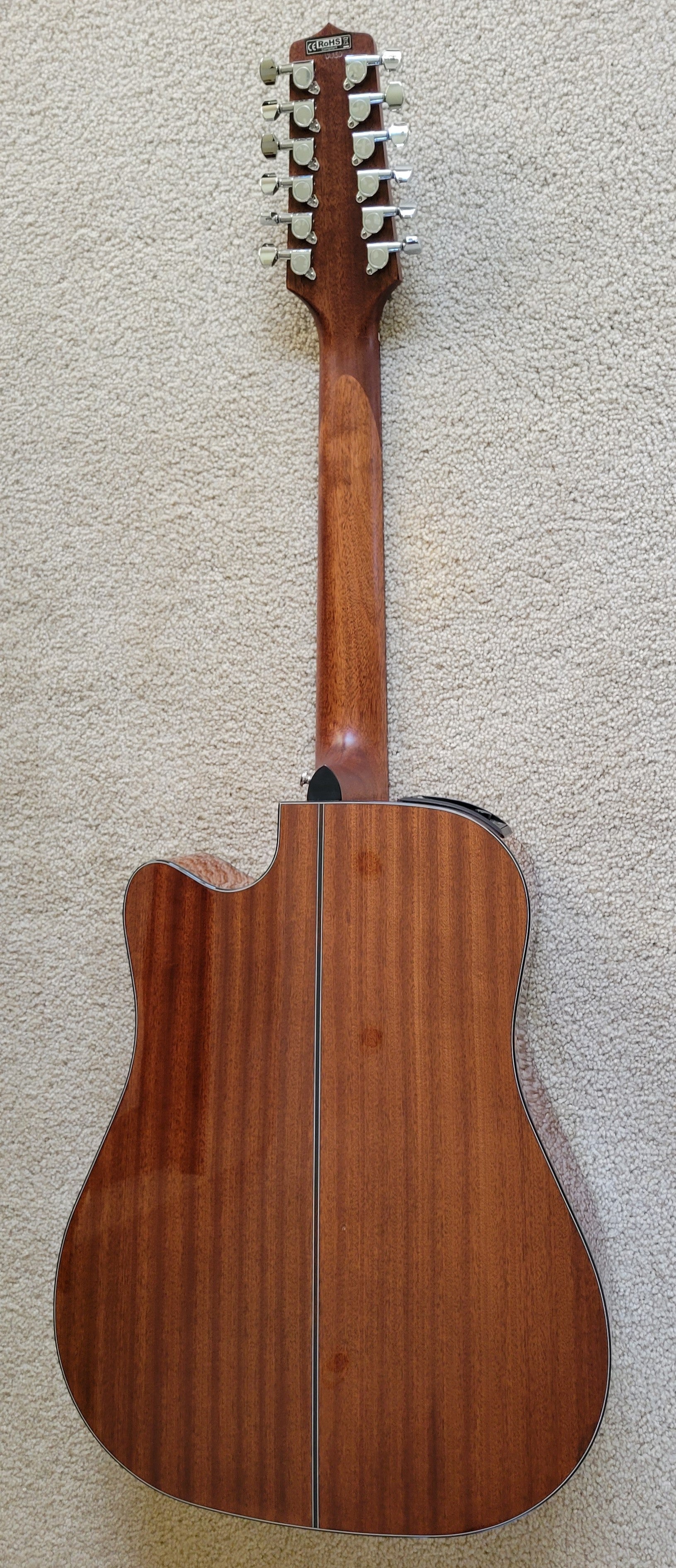 Ready for any performance situation, the GD30CE-12 features a solid spruce top and mahogany back and sides that produce a rich, resonant sound. The slim mahogany neck and 12”-radius ovangkol fingerboard provide great feel and playability, while the onboard Takamine TP-4TD preamp system gives you a built-in tuner and three-band EQ and gain controls for excellent amplified performance and versatility.