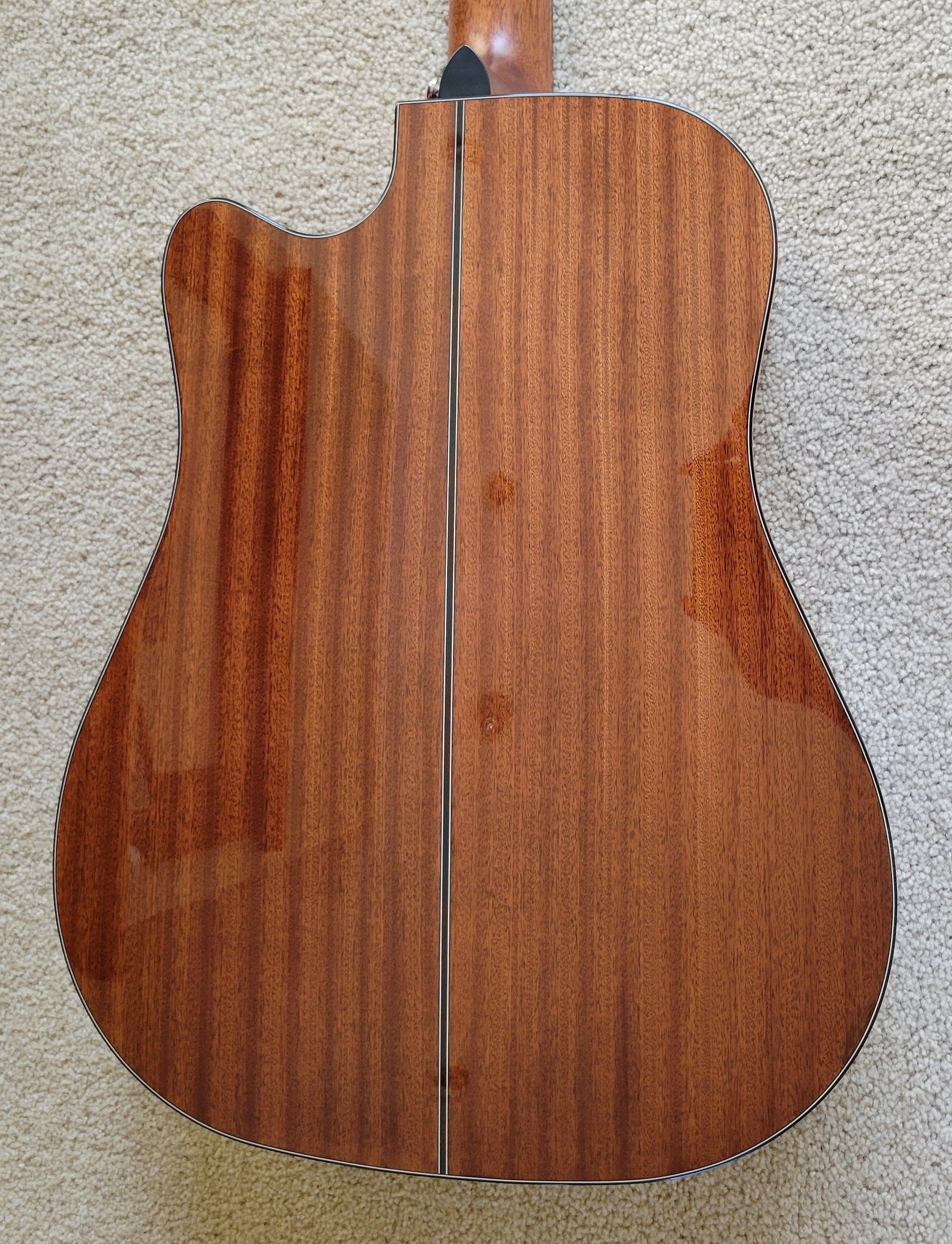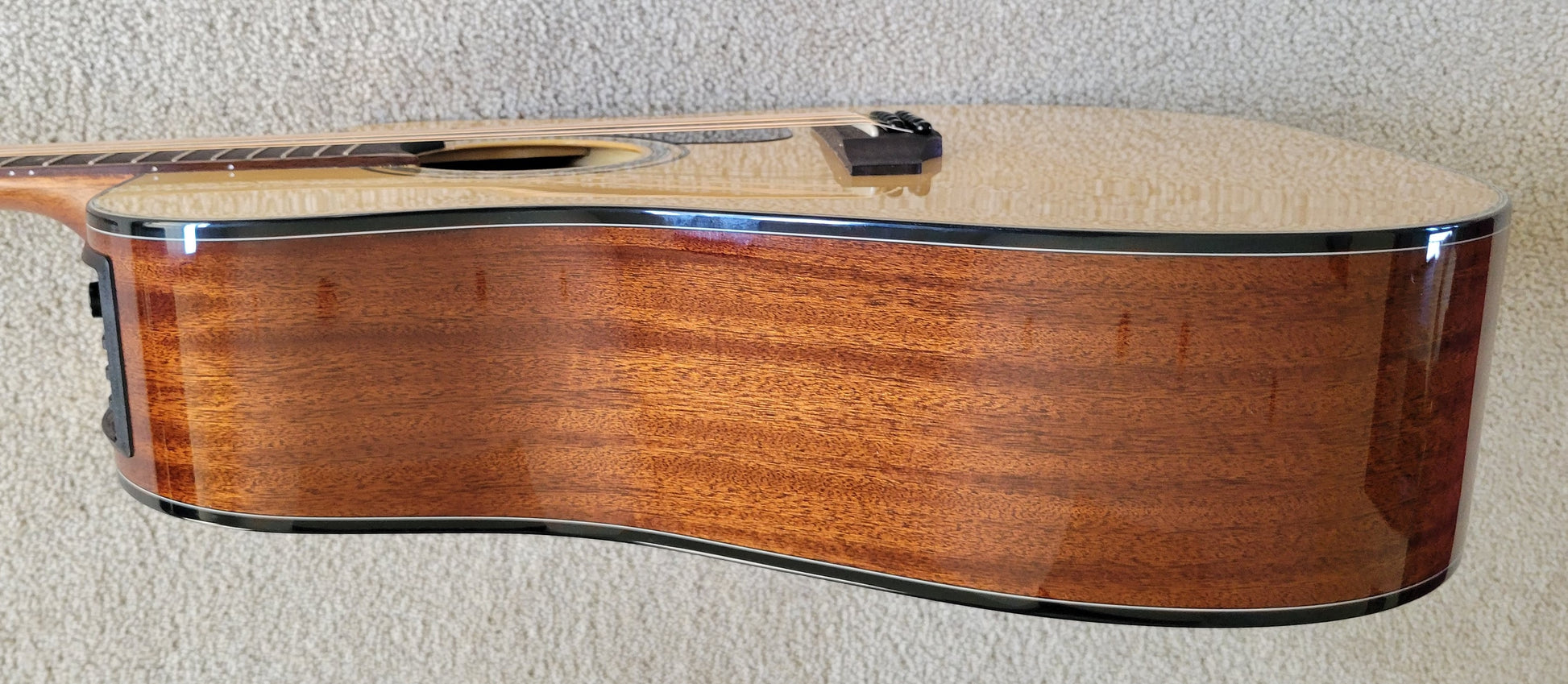 Other great features include a ovangkol bridge, synthetic bone nut and split bridge saddle, ovangkol headcap, pearloid rosette and dot inlays, chrome die-cast tuners and a beautiful gloss finish.