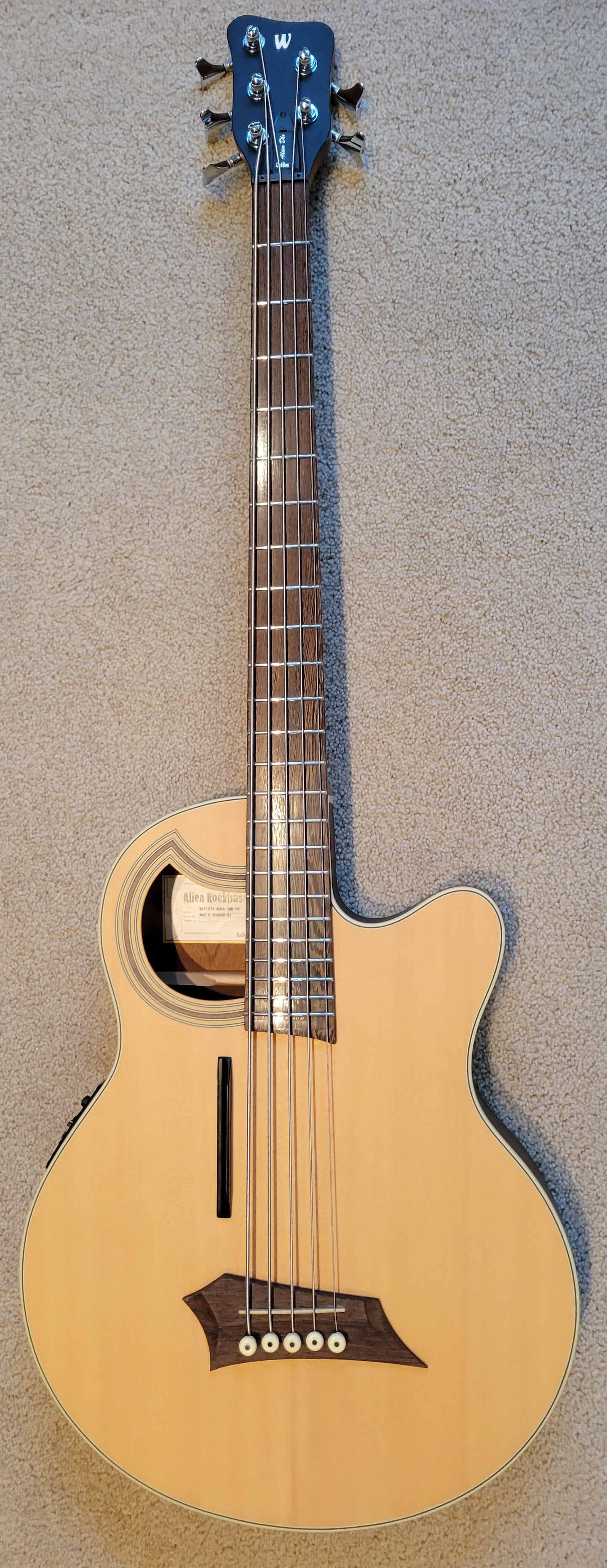 Warwick RockBass Alien Deluxe Hybrid Thinline 5-String Acoustic Electric Bass Guitar, New Gig Bag