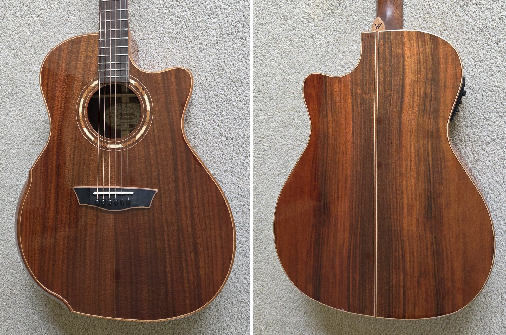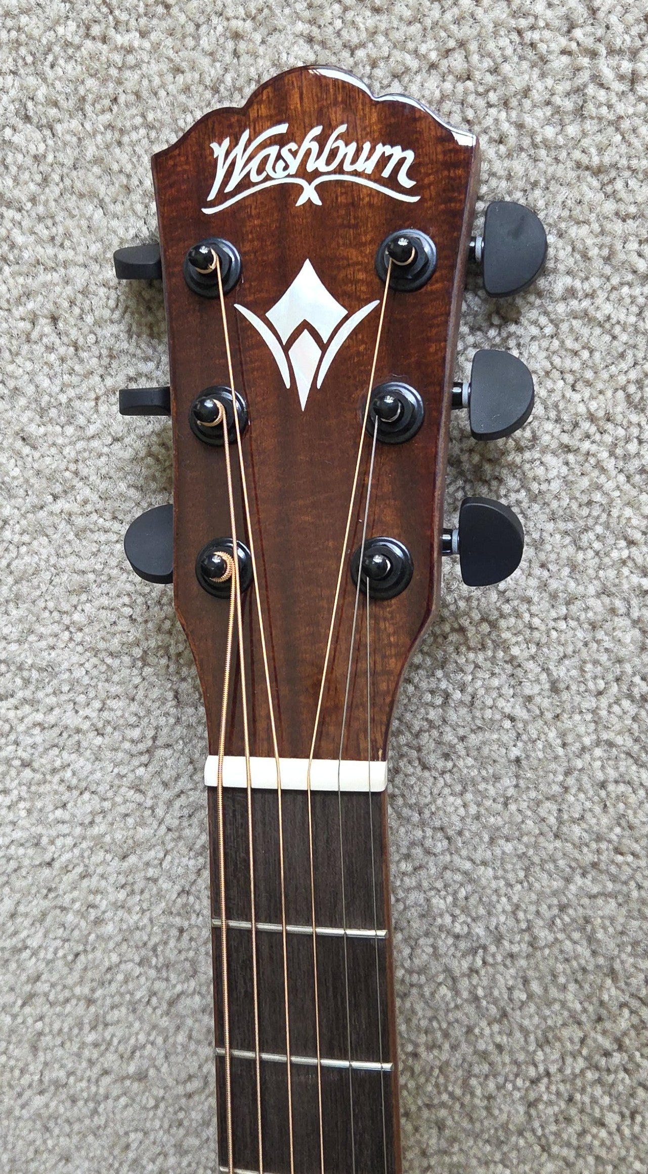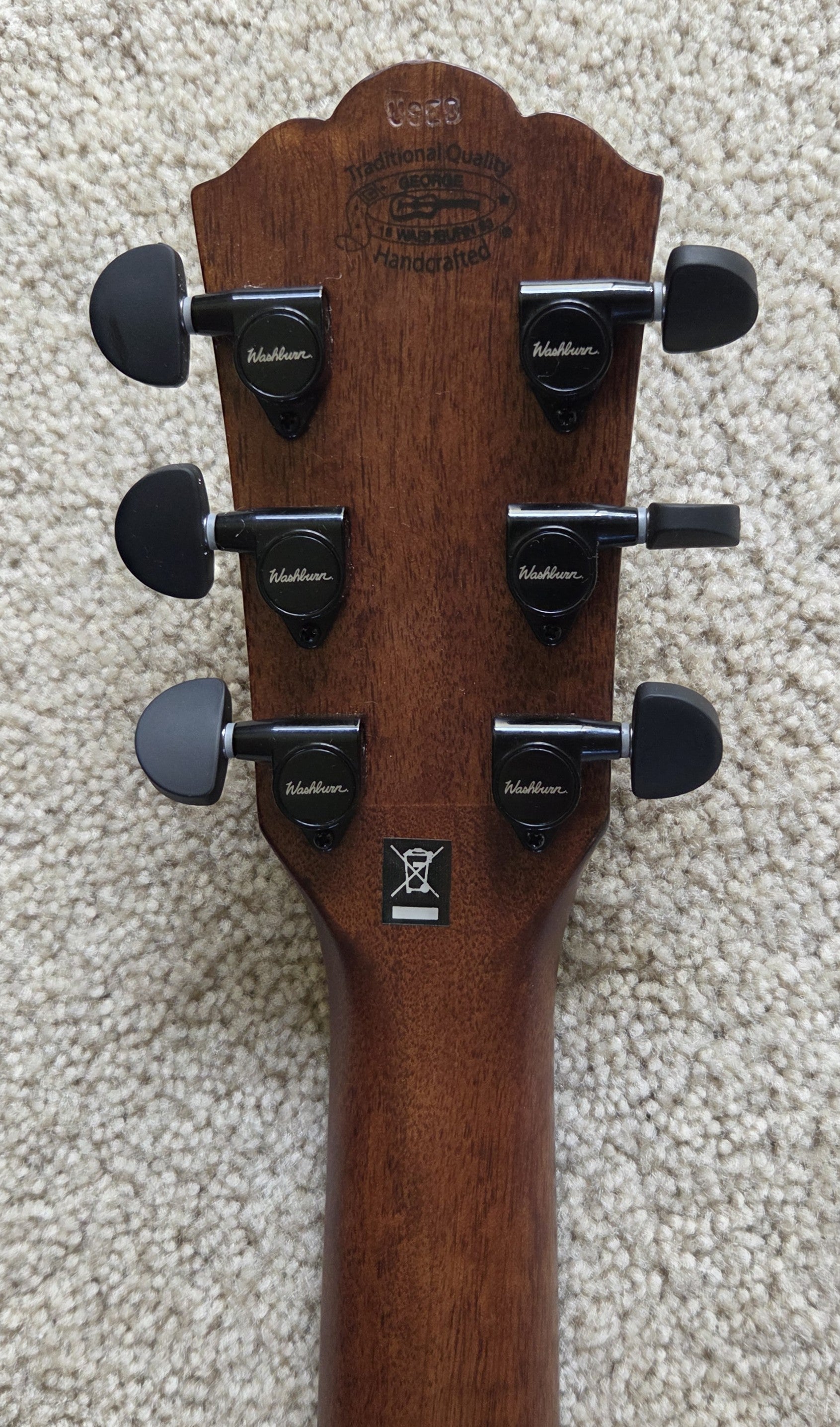 This EXCELLENT guitar went from Washburn to their authorized refurbisher MIRC, where it received a full multi-point inspection and expert setup - it is ready to play! There is a small ding on the lower backside that has been filled/sealed - see the photos. No other visible repairs were necessary, and no modifications were made except the back of the headstock was stamped USED, and the original serial number was replaced with a new one.