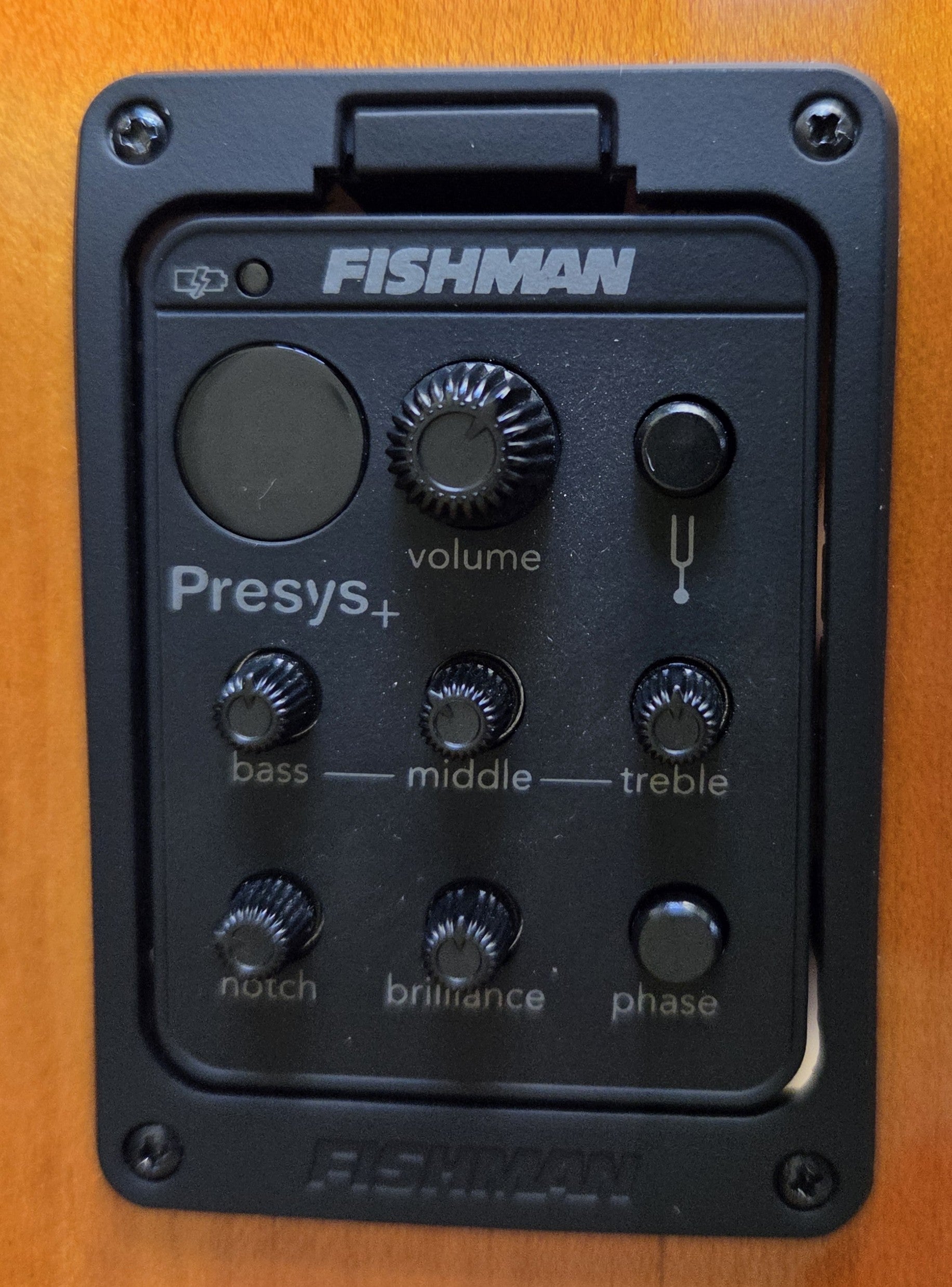 Equipped with a Fishman Presys+, active preamp system for versatile amplified tonal shaping. The Presys+ also sports an integrated tuner.